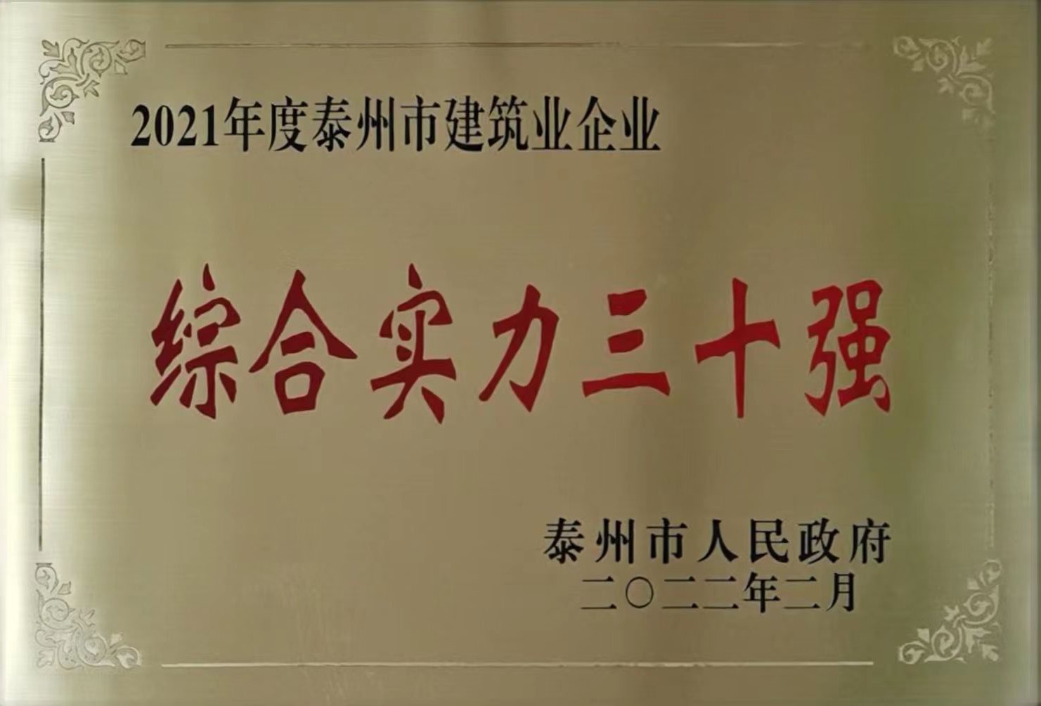 “江蘇省建筑業(yè)優(yōu)秀企業(yè)”、“江蘇省建筑業(yè)最具成長性百強企業(yè)”,2016年被國家工商總局授予“國家級守信用重合同企業(yè)”,2015年被全國總工會授予“全國模范職工之家”稱號,2018年被中國建筑企業(yè)協(xié)會評為“2017年度建筑業(yè)AAA級信用企業(yè)”